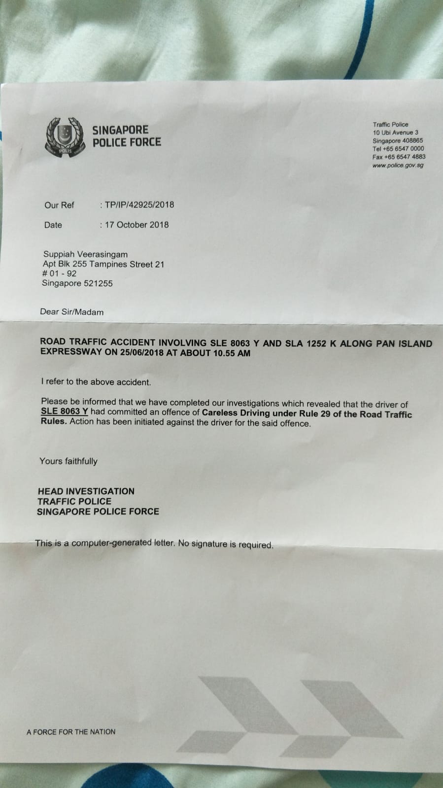 12/15/2020 12:17 AM 76119 Email letter to OI ACCIDENT INVOLVING SLE 8063Y and SLA 1252K on 25.06.2018.pdf