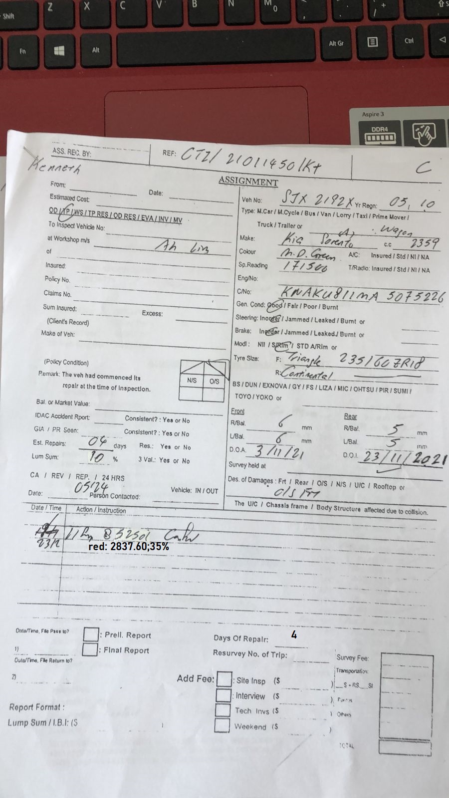 11/9/2021 5:26 PM 1816064 FW_ SNM21D206345_C02_SMG191R_CHEESC _ FW_ ARRANGE SURVEY _YOUR INSURED SMG191R DOA_ 03_11_2021 _ OUR CLIENT SJX2192X _1_.msg
