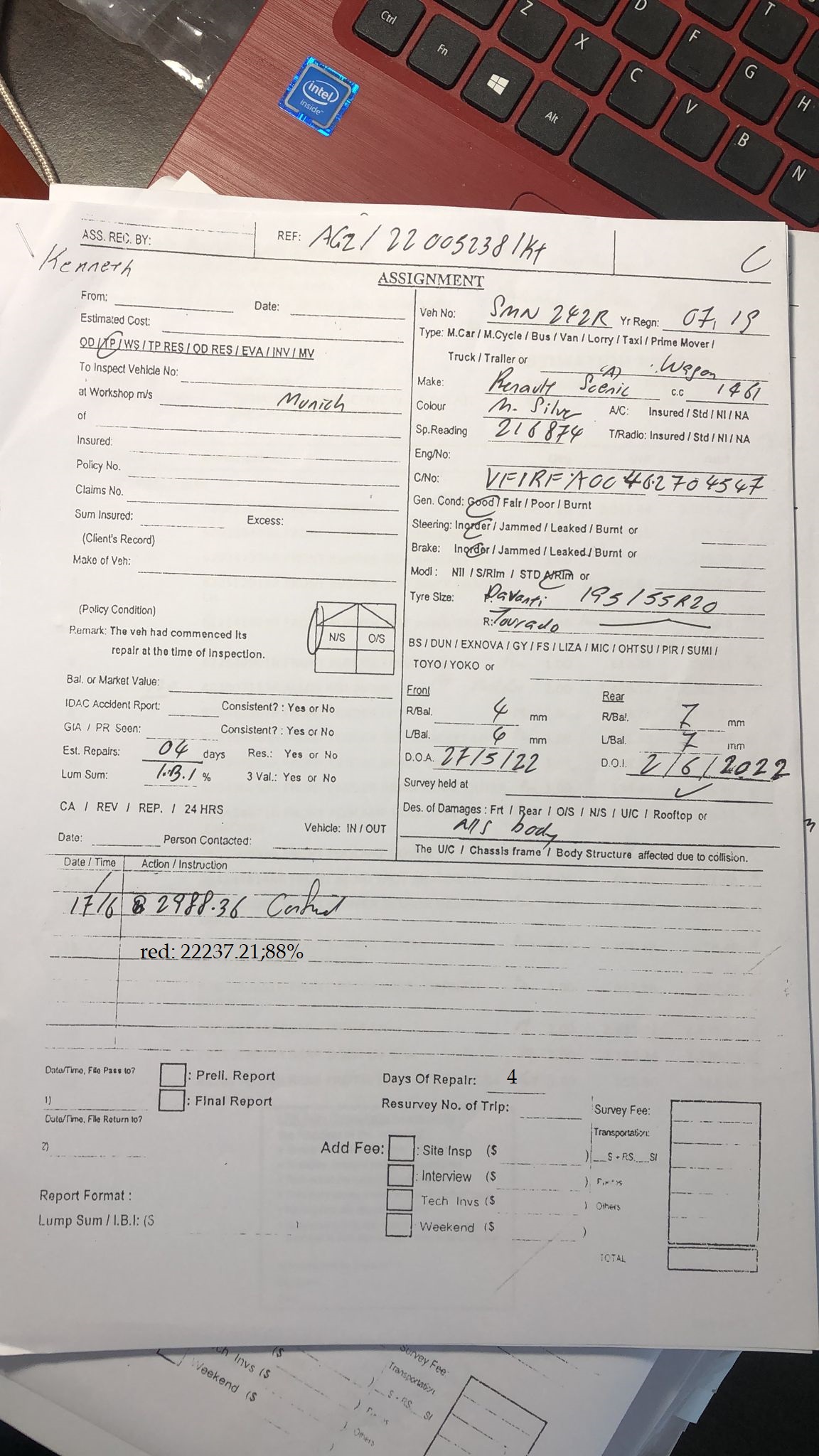 6/21/2022 2:07 PM 1093632 Survey Report Invoice of Vehicle SMN 242R Ref C10015481 JT.msg