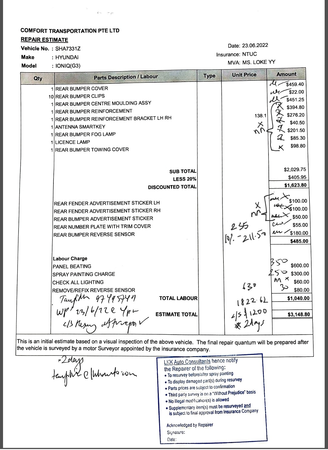 9/6/2022 4:02 PM 1838080 Survey Report Invoice of Vehicle SHA 7331Z NTUC Ref MT1177590_002.msg