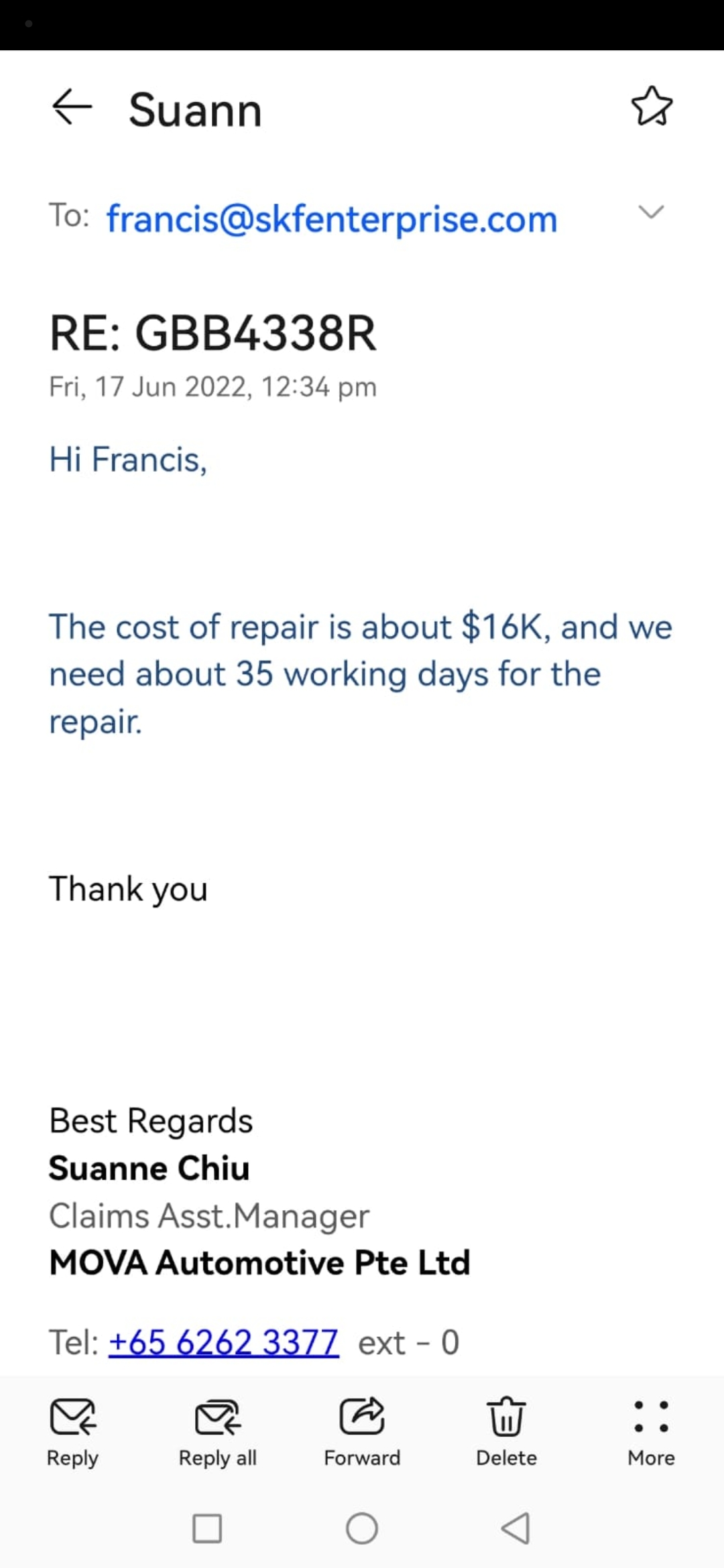 3/13/2023 9:27 AM 2948608 130323 RE SKF Enetrprise Toyota Hiace _ Vehicle No GBB 4338R _ Inv. AC2301279 _ Survey Report.msg