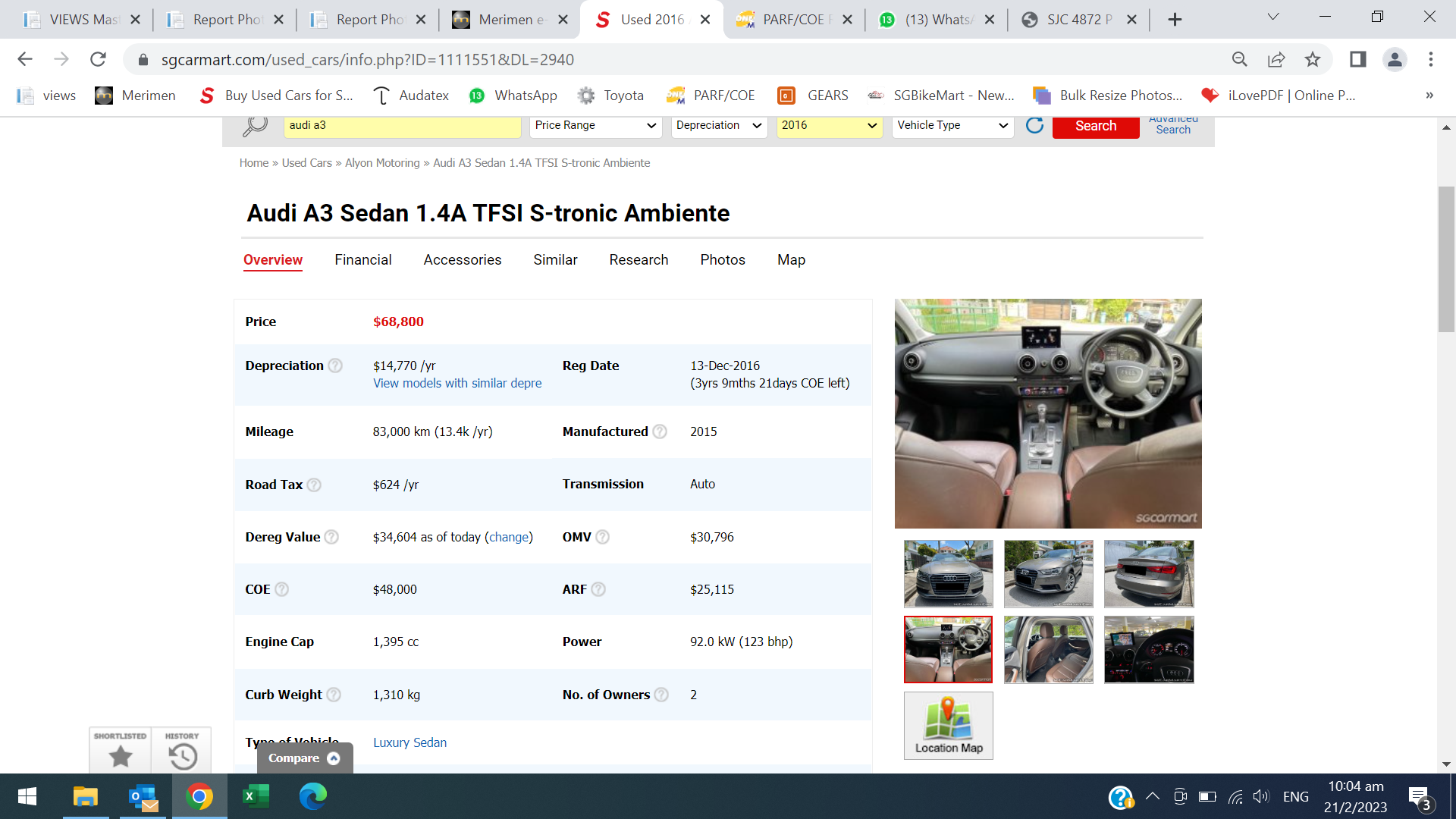 2/22/2023 10:35 AM 1028292 Used audi a3 1.0 Cars _ Singapore Car Prices _ Listing _ Sgcarmart.pdf