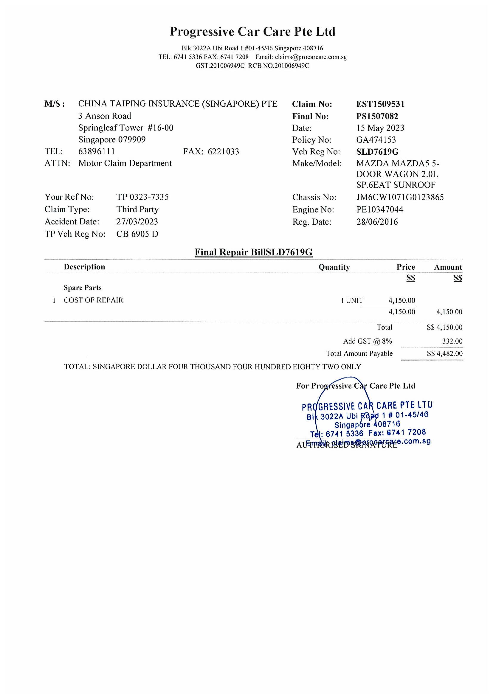 4/3/2023 10:45 AM 252928 RE_ SNM23D202299_C02_CB6905D_LEWLC _ RE_ Arrange for survey _ Acc on 27_03_2023 invlg SLD 7619 G _ CB 6905.msg